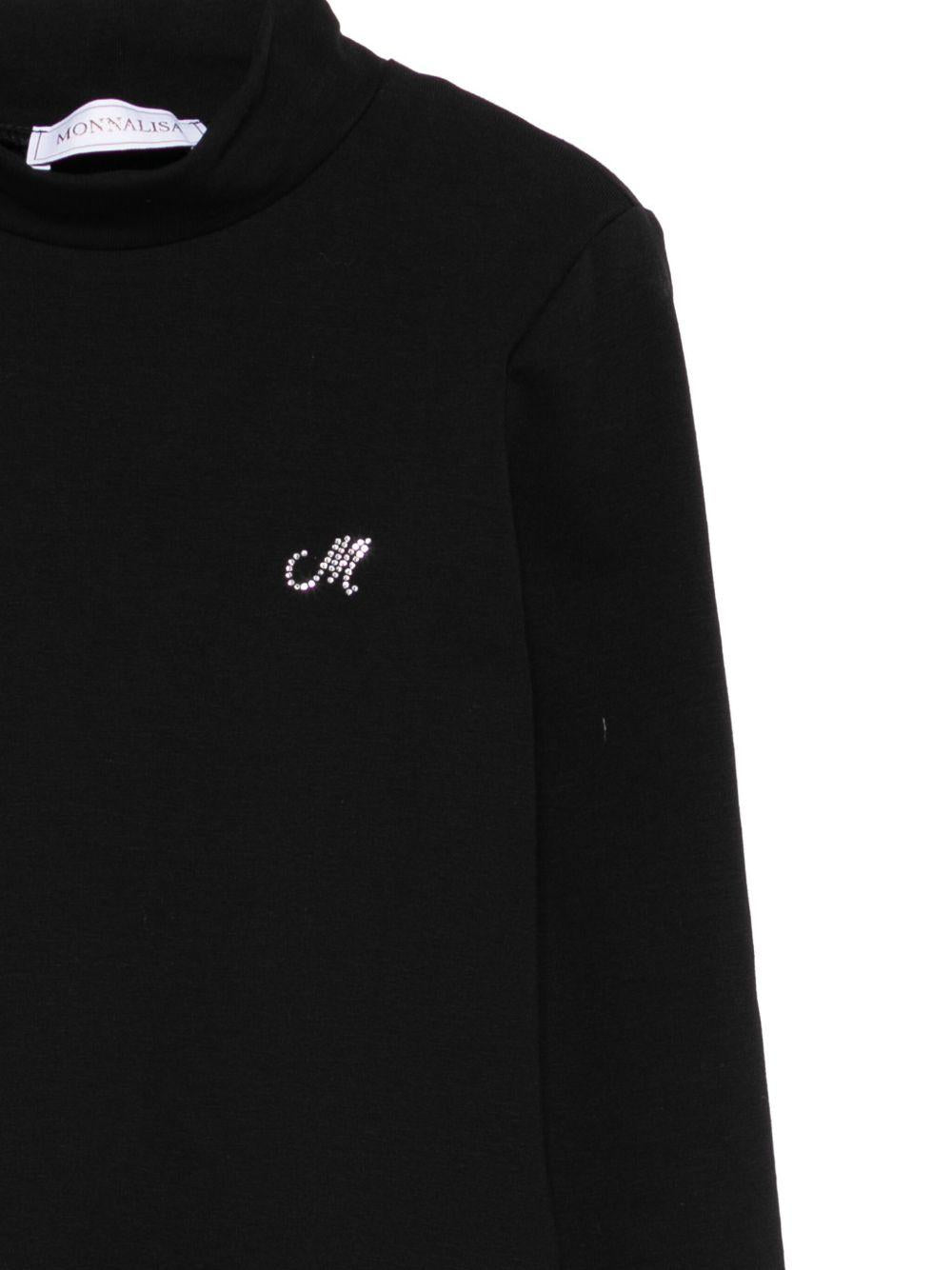 The Monnalisa black T-shirt for girls with rhinestone decorations is available on the RubinoKids.com online store. Made of 93% cotton, 7% elastane, it features a black turtleneck, long sleeves, a fitted fit, and rhinestone decorations. Available in various sizes, it is part of the Monnalisa Fall/Winter 2025 collection and is available for 24-48 hour delivery in Italy.