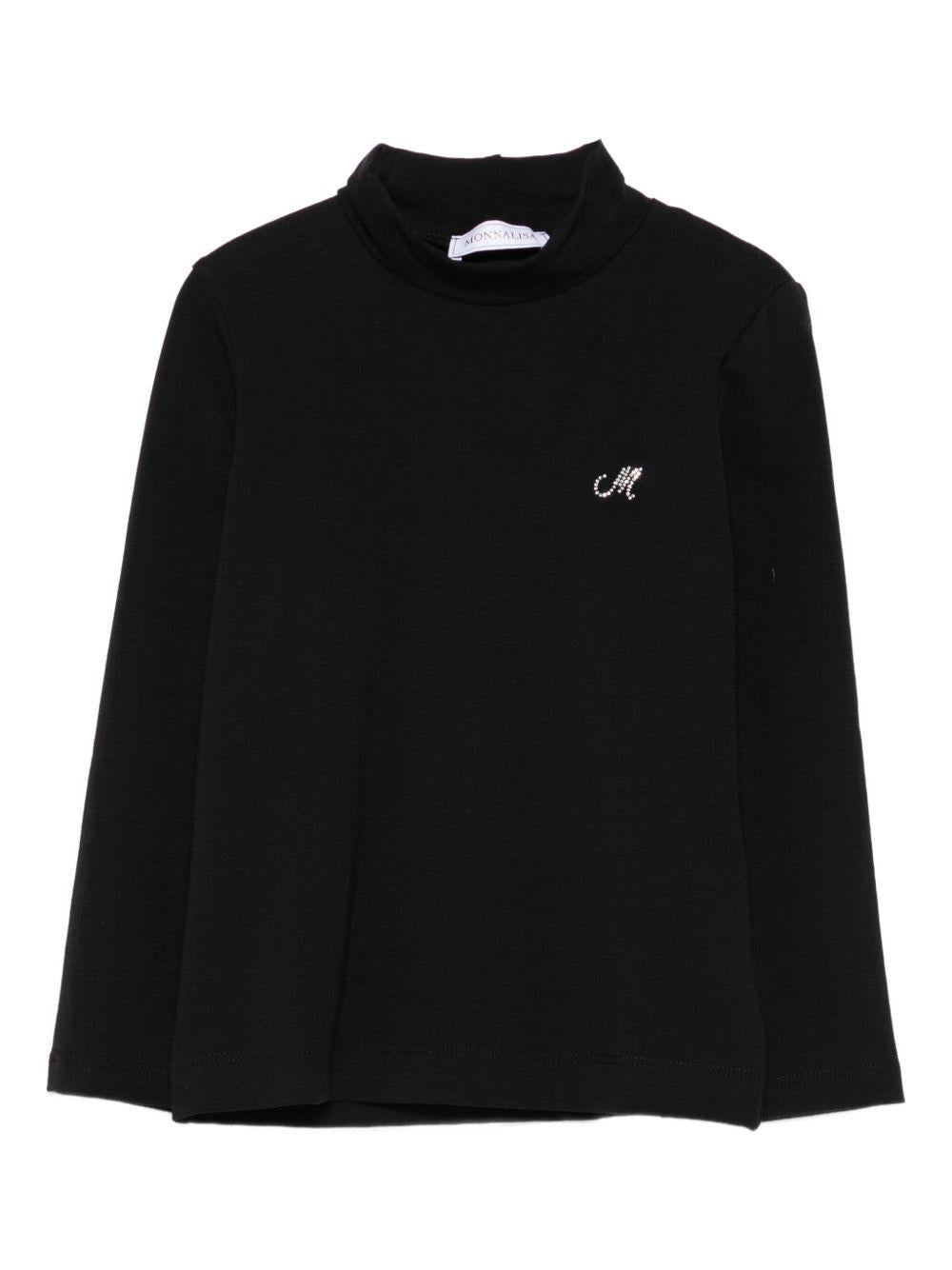 Monnalisa black T-shirt for girls with rhinestone decorations