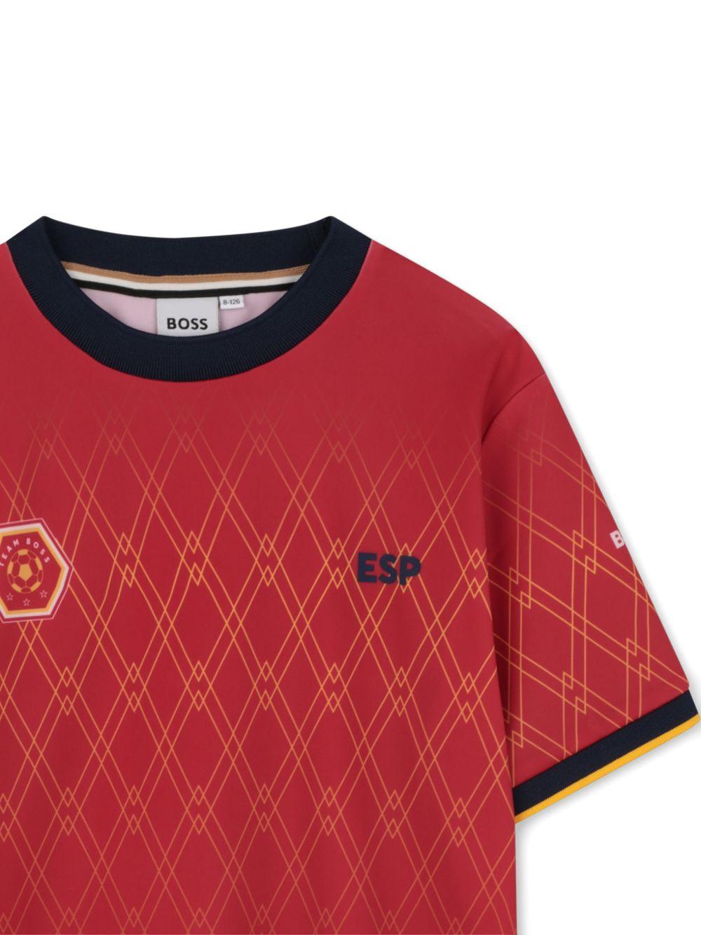T-shirt per bambino Boss Kids rossa con motivo a rombi