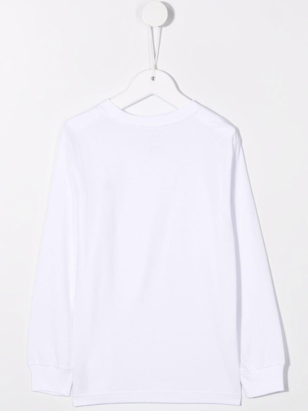 The Polo Ralph Lauren Kids white T-shirt with Polo Pony motif is available on the RubinoKids.com online store. Made of 100% cotton, it features a white Polo Pony motif, a round neck, long sleeves, and a straight hem. Available in various sizes, it is part of the Polo Ralph Lauren Kids Fall/Winter 2025 collection and is available for delivery in Italy within 24/48 hours.