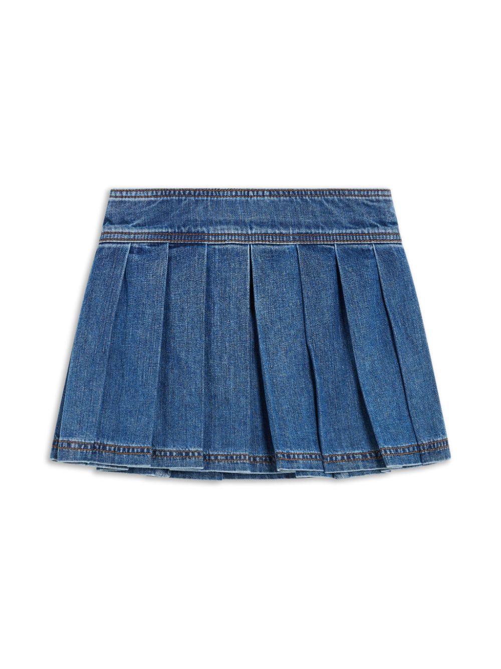 Versace Kids blue Medusa pleated denim miniskirt for girls with double button closure